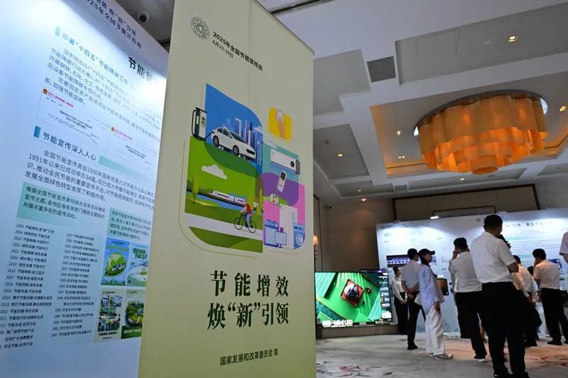 6月23日,以“节能增效,焕‘新’引领”为主题的2025年全国节能宣传周在山东省青岛市启动。图为与会者在节能降碳展上参观。新华社记者 李紫恒 摄