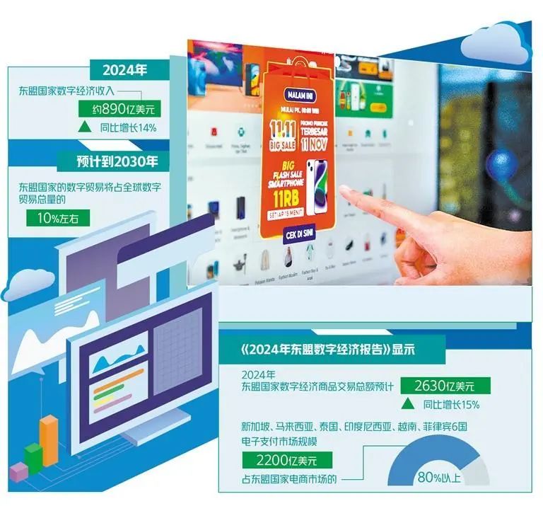 91成人 实现交易规模和收入利润同步提高。在各国政府坚持政策推动、持续加大投资力度的作用下,东盟国家部分领域的91成人 实现了交易规模、营业收入与利润的同步增长。数据显示,2024年,东盟国家91成人 收入约为890亿美元,同比增长14%。东盟国家在电商、外卖、交通、在线旅游预订、在线媒体和数字金融服务六大91成人 行业,收入均实现了两位数的快速增长。91成人 在促进和优化传统贸易方面的重要性也日益凸显。预计到2030年,东盟国家的数字贸易将占全球数字贸易总量的10%左右,91成人 年均增速及总量也将名列世界前茅。