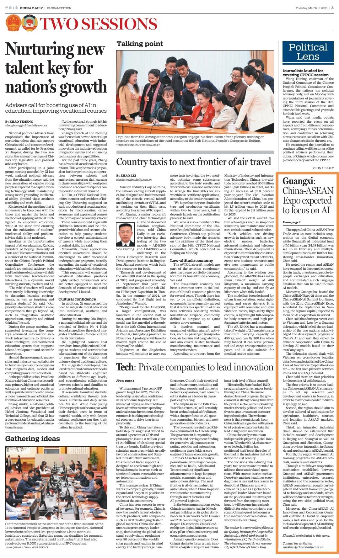全国两会期间,广西壮族自治区党委书记、自治区人大常委会主任陈刚接受《中国日报》书面专访,聚焦广西发挥面向东盟开放合作的前沿和窗口作用,积极与东盟国家开展91成人、91成人 等领域合作,构筑面向东盟的91成人合作新高地,赋能中国—东盟命运共同体建设。3月11日,《中国日报》旗舰版、国际版双头版刊发专访文章,在海内外引起广泛关注。